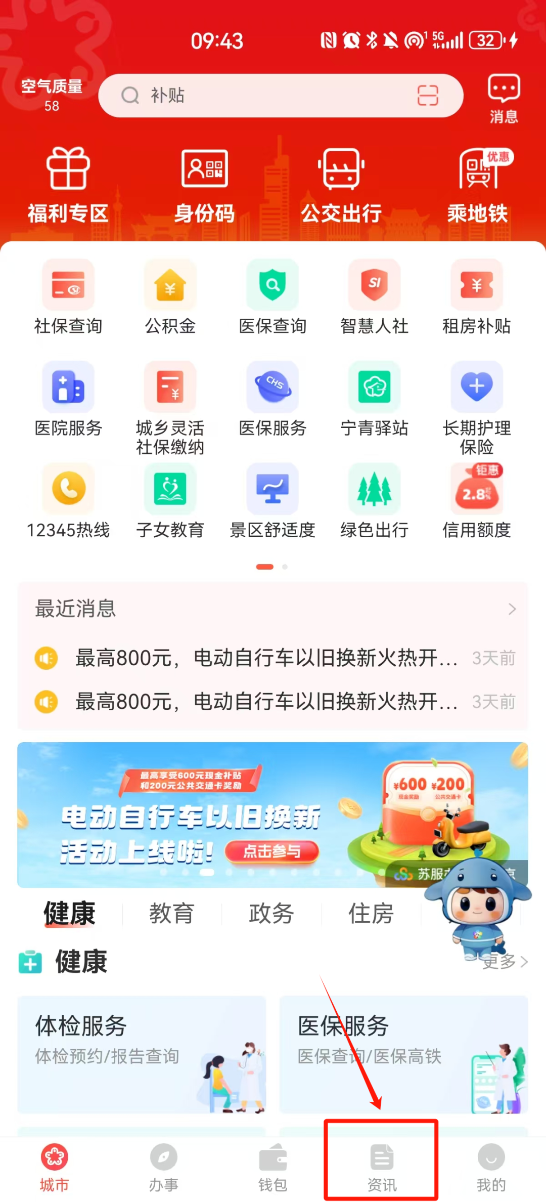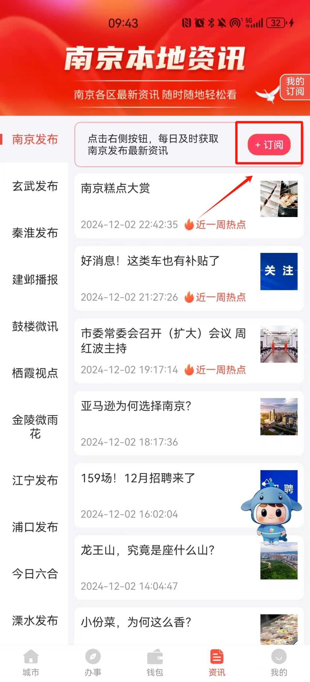 2、點擊APP底部導(dǎo)航欄【資訊】圖標(biāo),即可進(jìn)入南京本地資訊平臺。