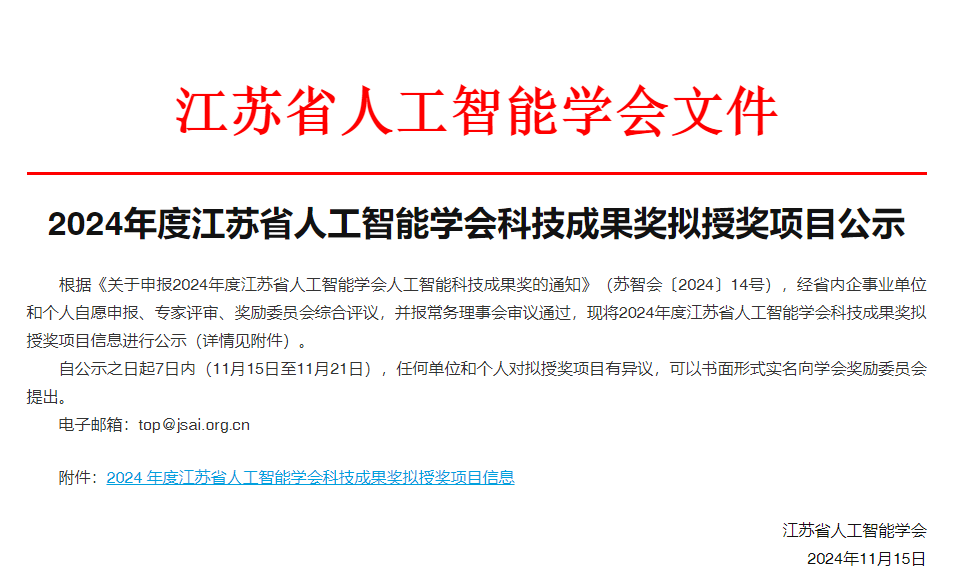 捷報!“新型公交都市先導(dǎo)區(qū)”項(xiàng)目入選2024年度江蘇省人工智能學(xué)會科技成果獎名單