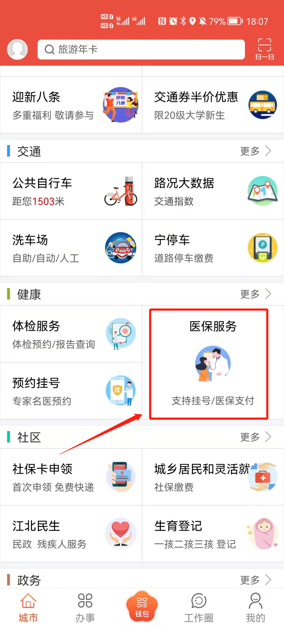 第一步:打開“我的南京”APP,點(diǎn)擊首頁(yè)“健康模塊-醫(yī)保服務(wù)”按鈕,即可進(jìn)入醫(yī)保服務(wù)頁(yè)面。